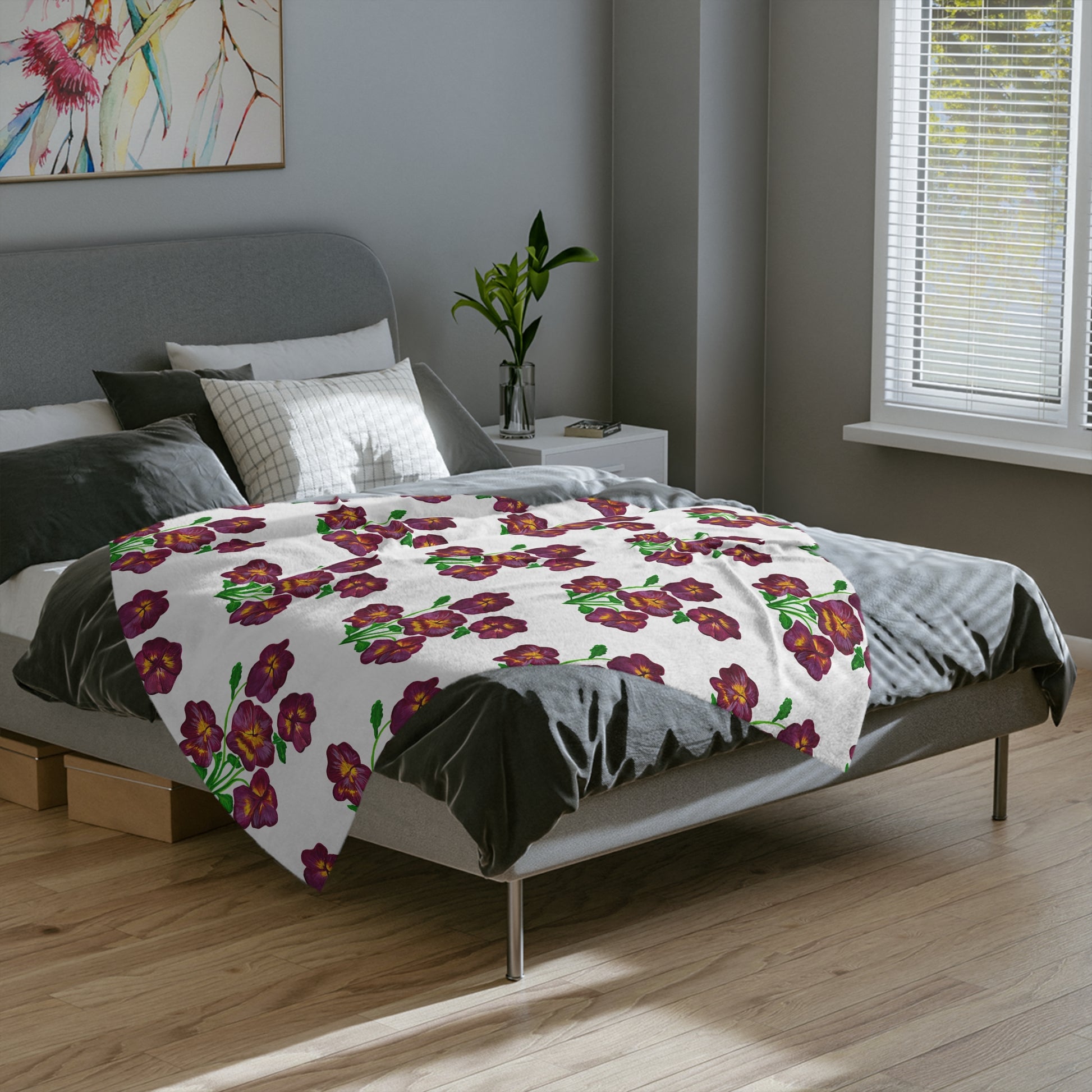 Chic Floral Blanket, painted pansies, Cozy Home Decor, Soft Throw Blanket, Ideal Gift for Women, Living Room Accent, Spring Decor