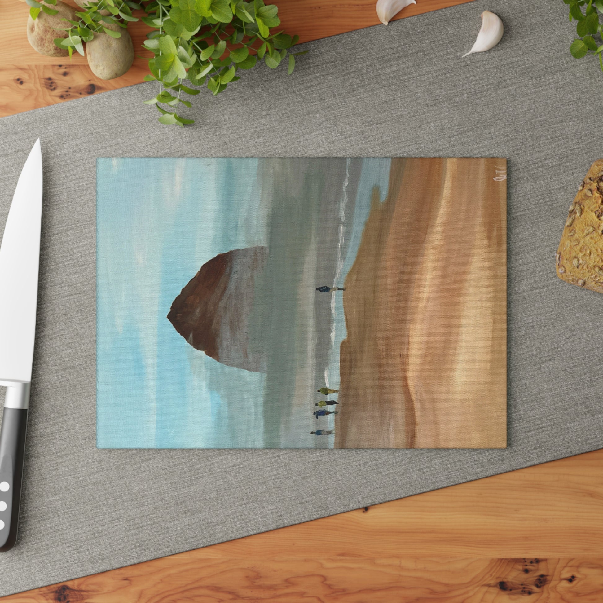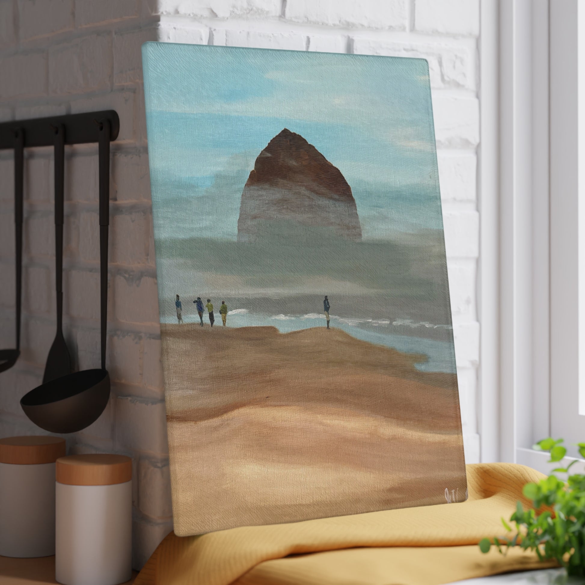 Coastal Glass Cutting Board, Beach Kitchen Decor, Foggy Morning Sea, Coastal Home Gift, Haystack Rock Cutting Board