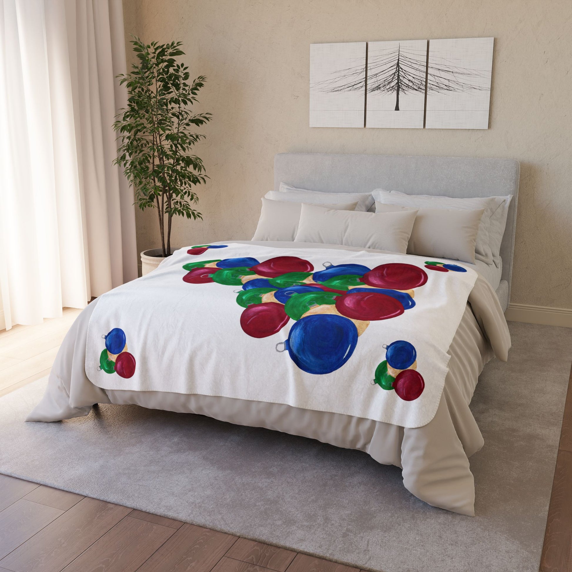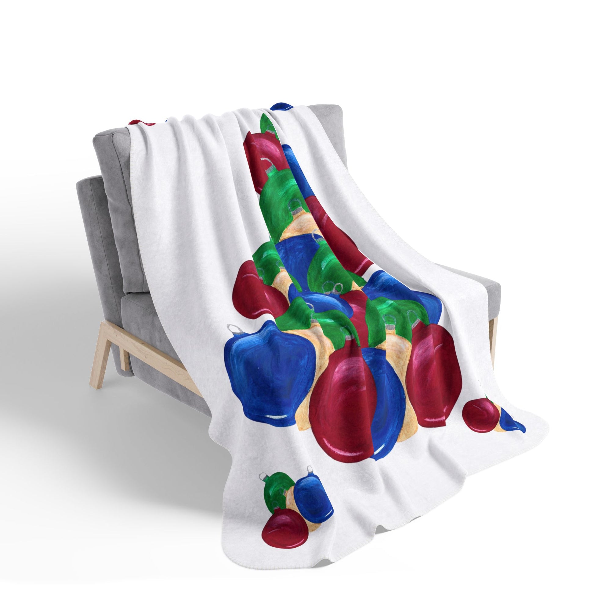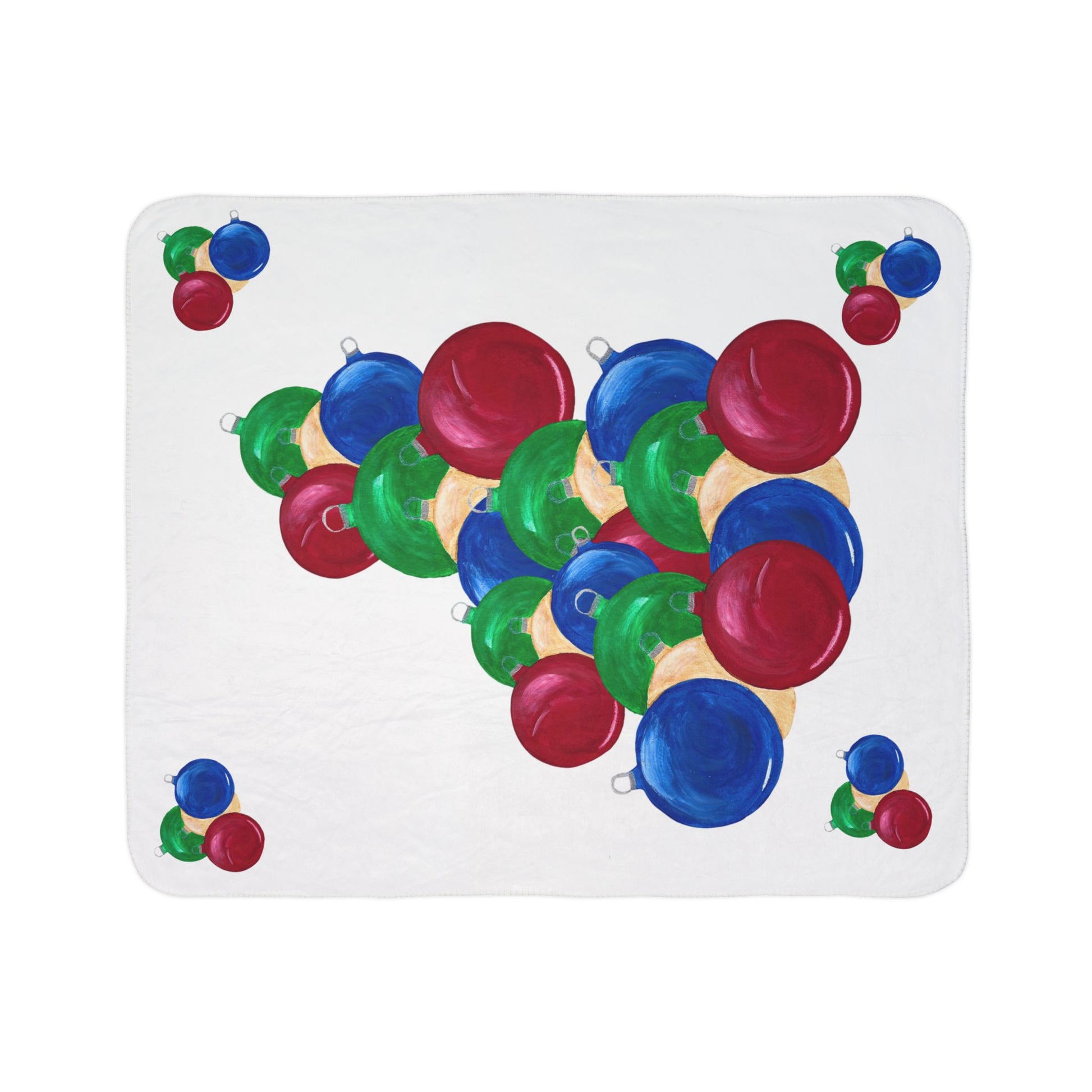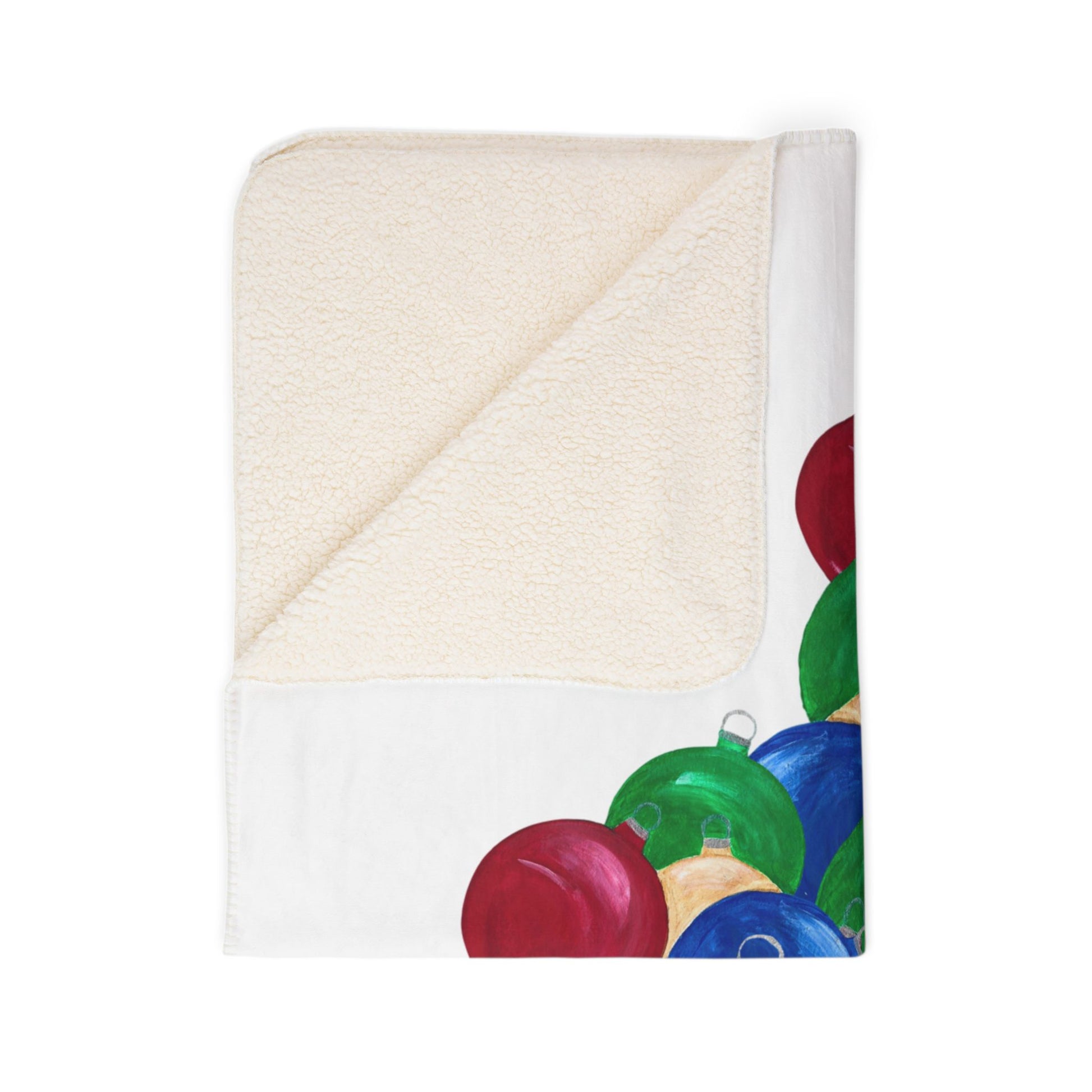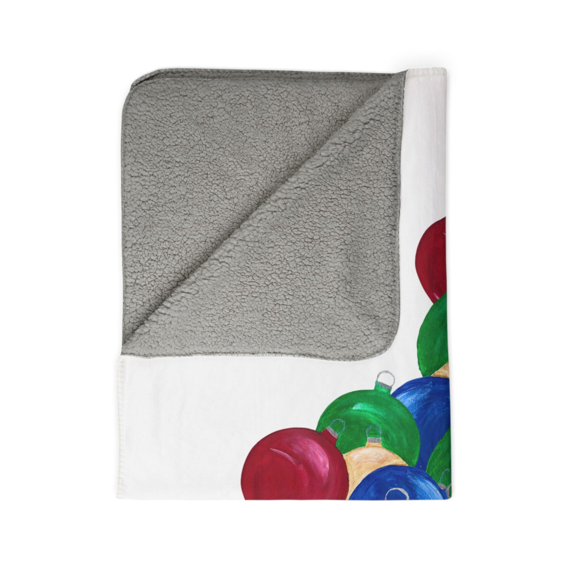 Cozy Holiday Fleece Sherpa Blanket, Festive Throw for Christmas, Ornaments Design, Perfect Gift for Winter, Holiday Decor, Snuggle Up