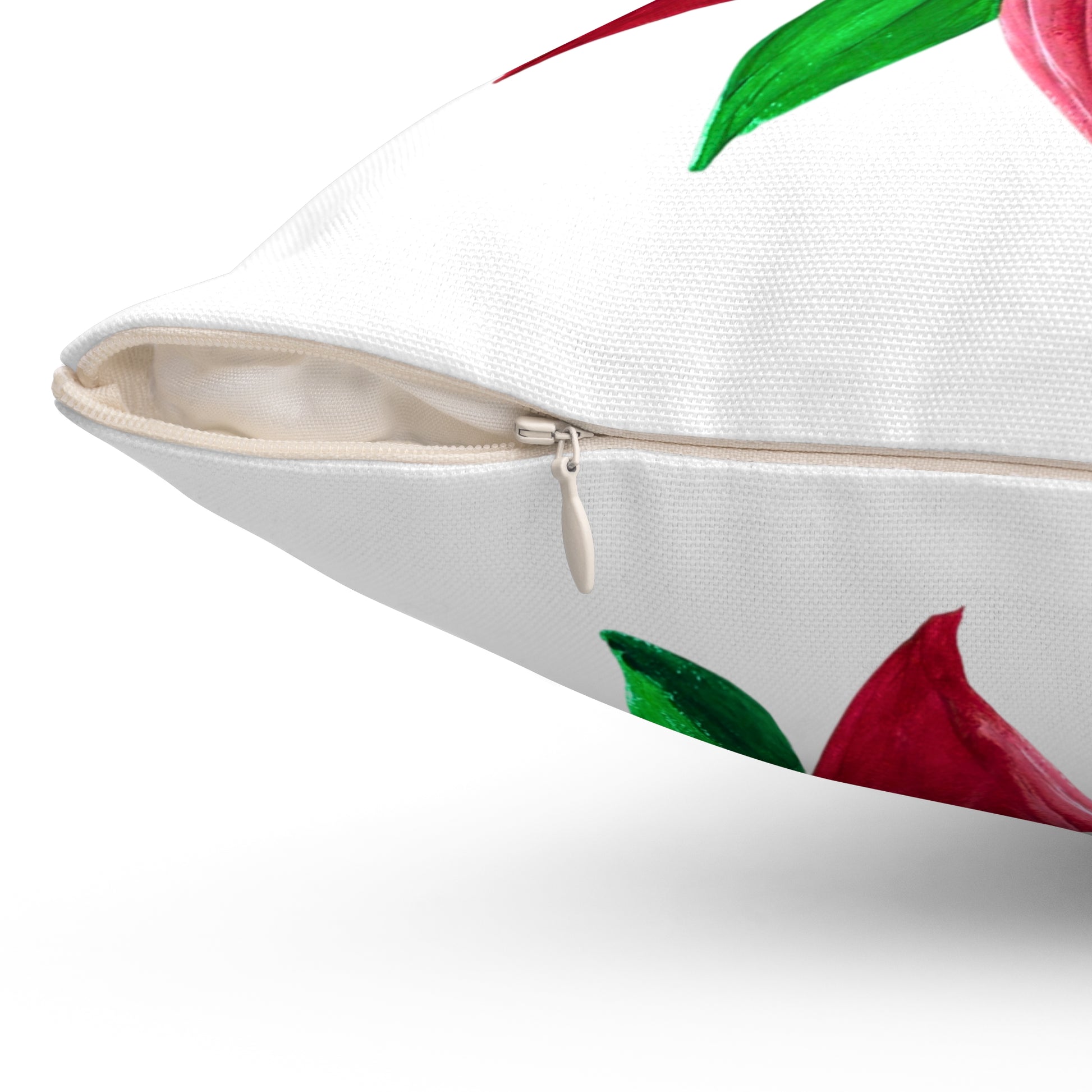 Elevate your home decor with this beautifully designed Spun Polyester Square Pillow. Featuring a vibrant red poinsettia design, this pillow adds a touch of warmth and charm, perfect for the holiday season. Its cozy aesthetic creates a welcoming atmosphere, making it an ideal accent for your living room, bedroom, or cozy reading nook. This pillow is not just a decorative piece; it's a festive reminder of family gatherings and joyful celebrations. Perfect for Christmas, New Year, or as a thoughtful gift for friends and family who appreciate artistic home decor.