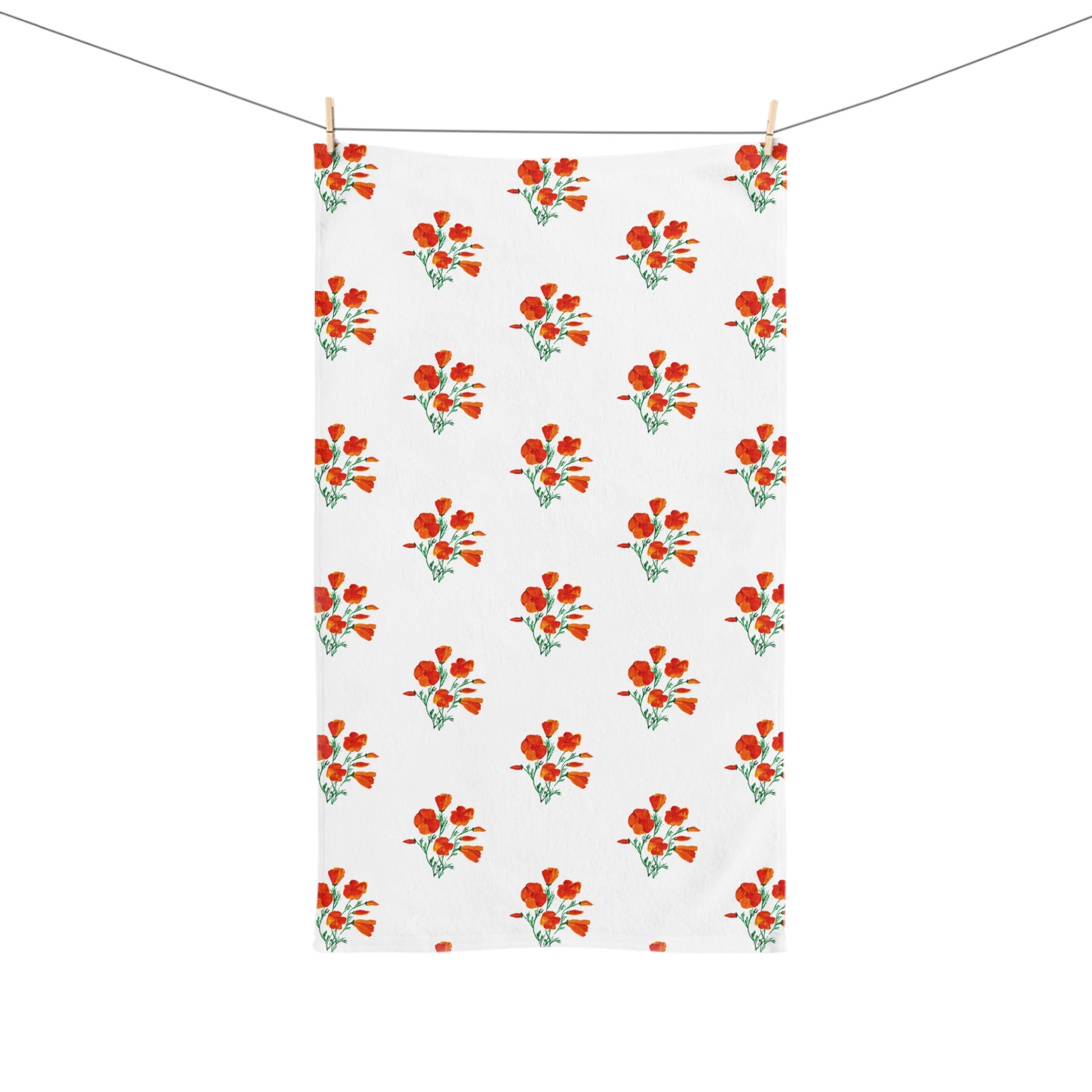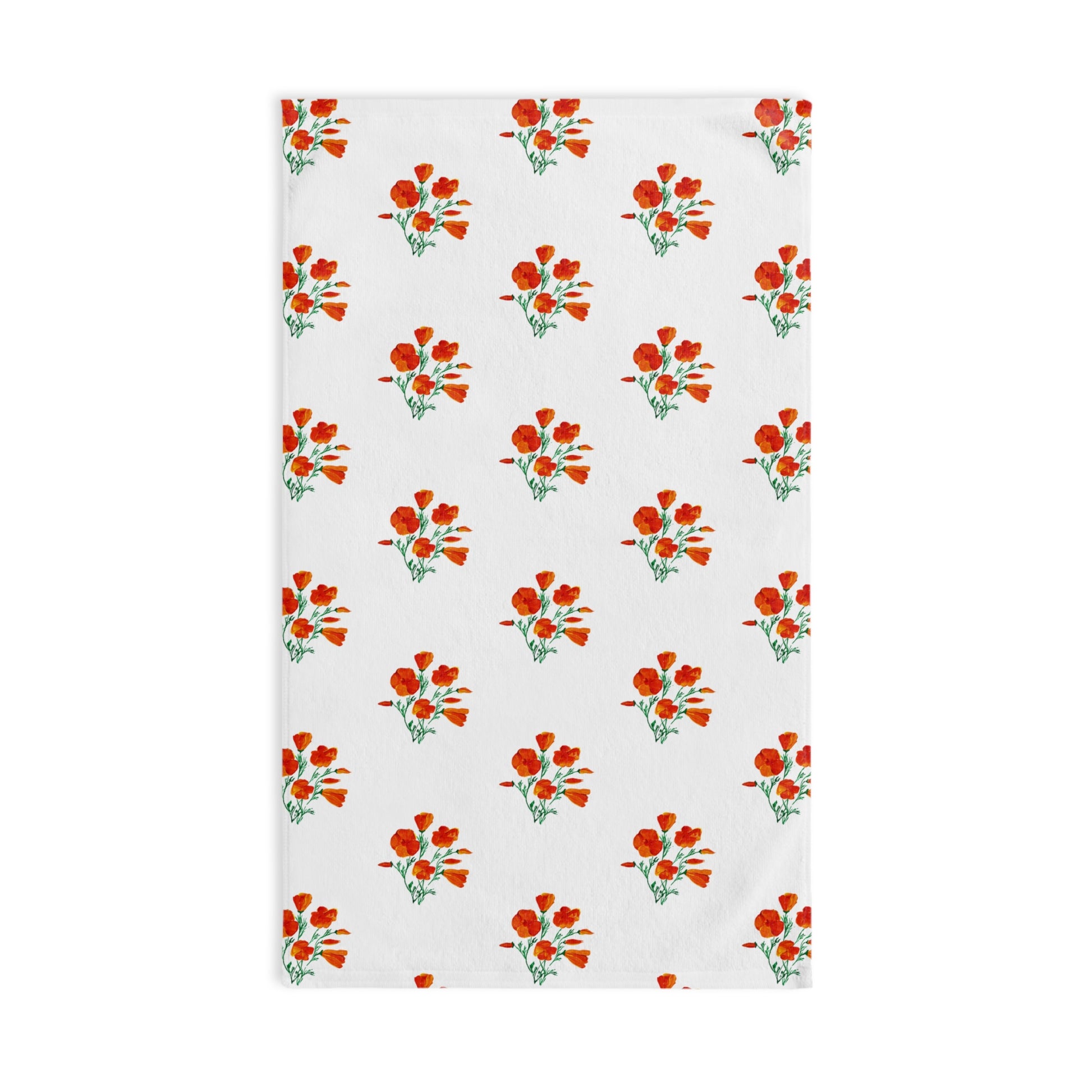 Floral Hand Towel, California Poppies Kitchen and Bath Decor, Gift for Her, Bathroom Accessory, Housewarming, Vibrant Towel