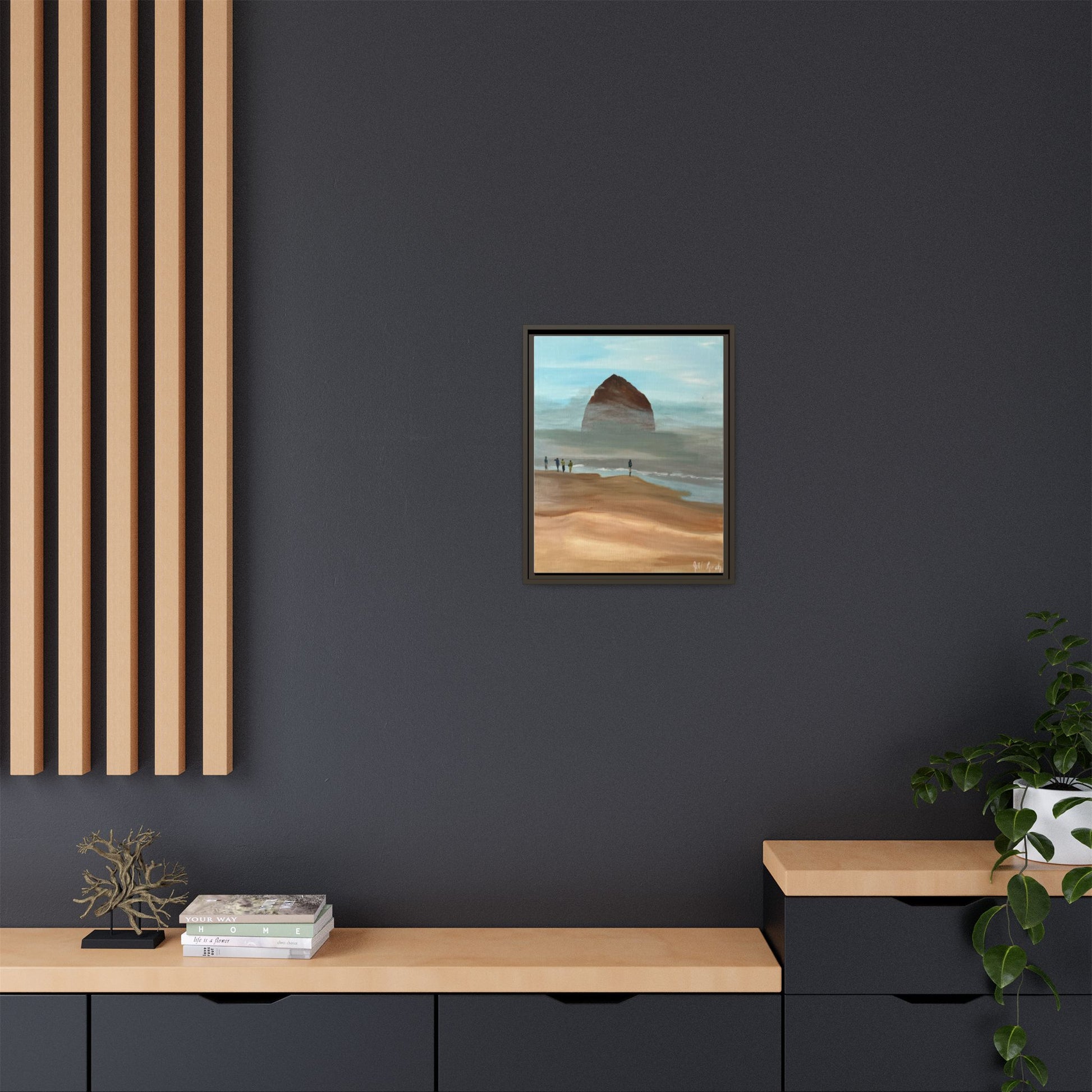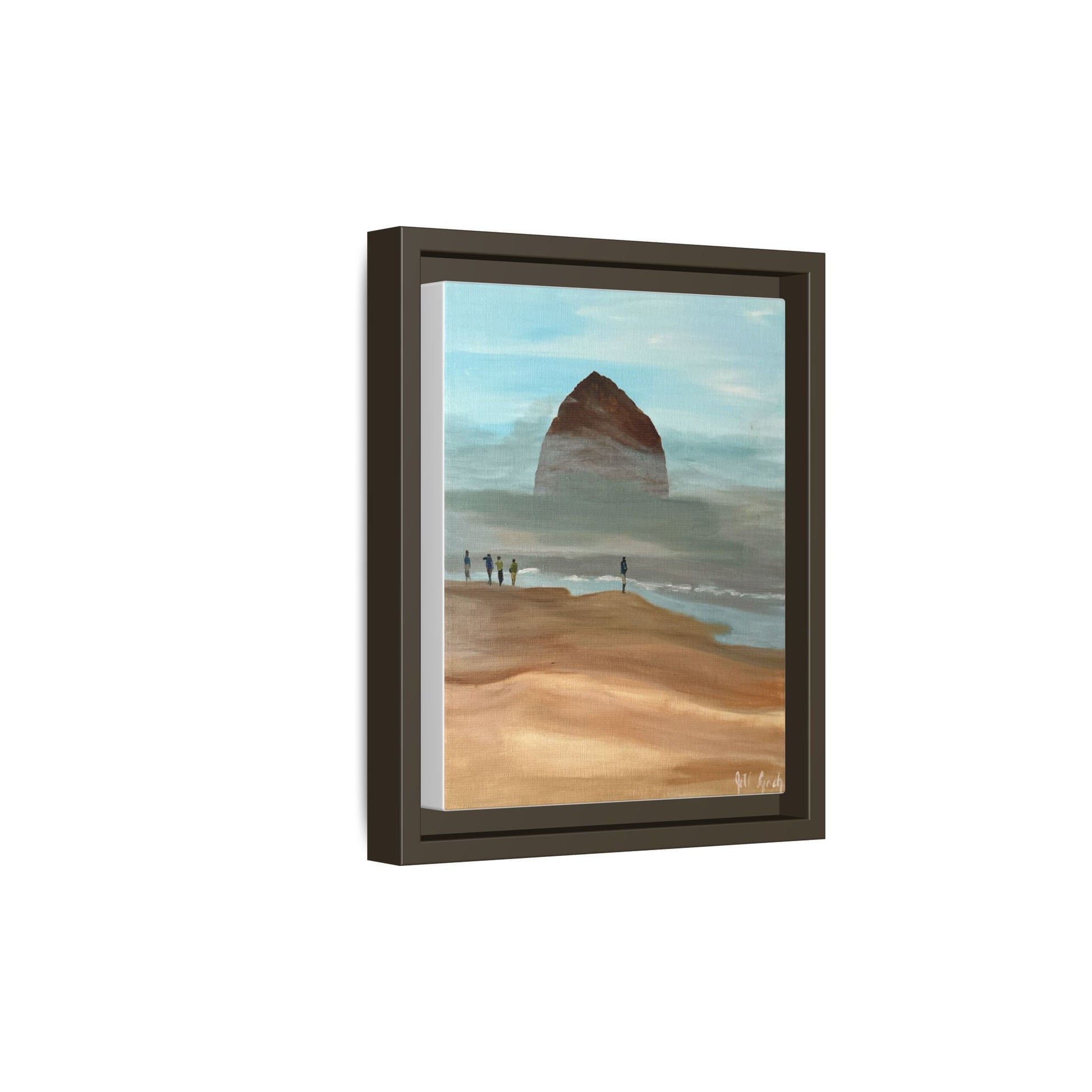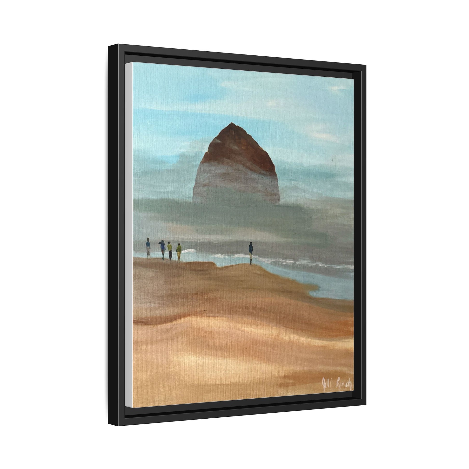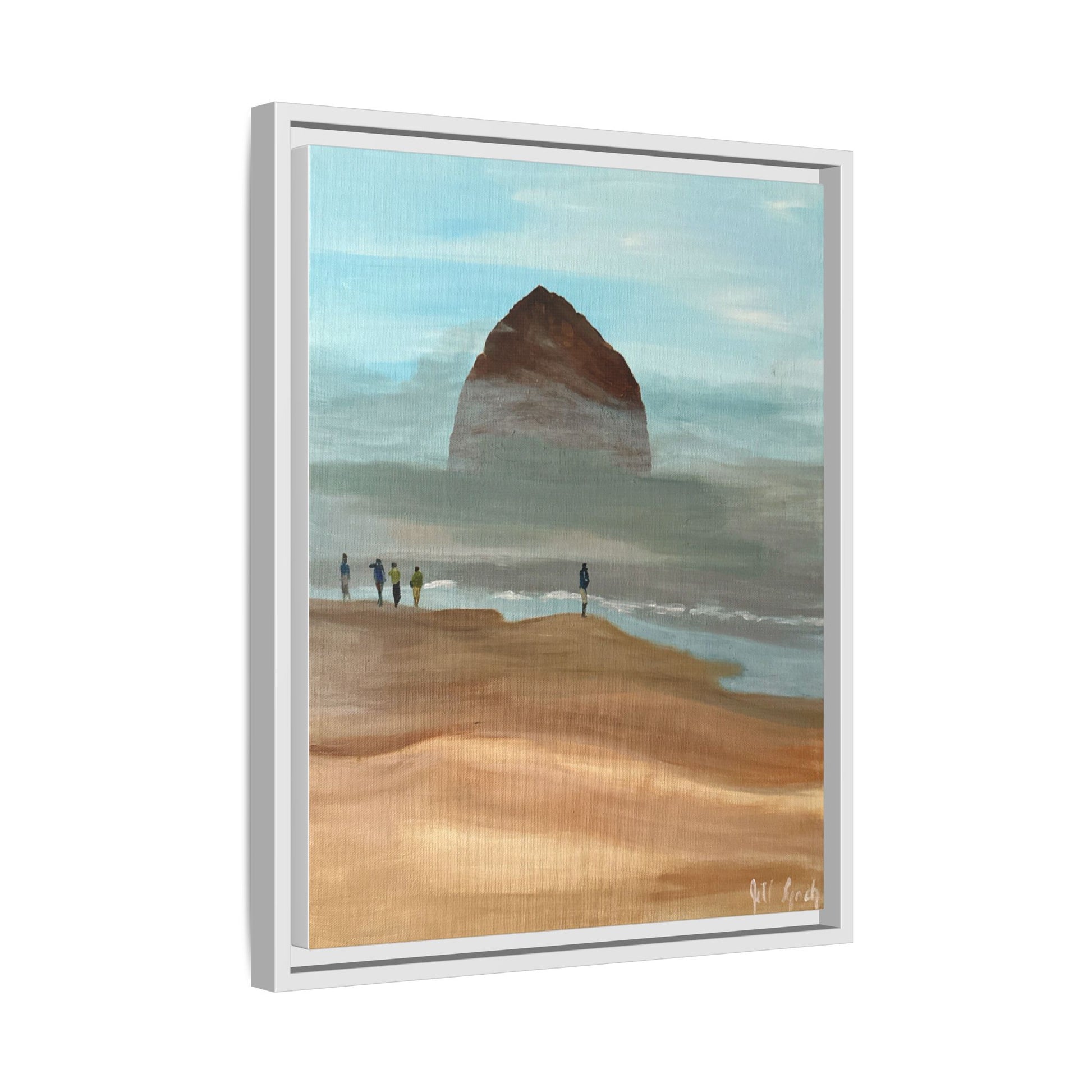 Experience the calming atmosphere of fog burning off Haystack Rock with this acrylic on canvas print. Perfect for nature lovers and those seeking a serene vibe in their space. Ideal for coastal decor, beach house, or anyone looking to bring a piece of the ocean inside.