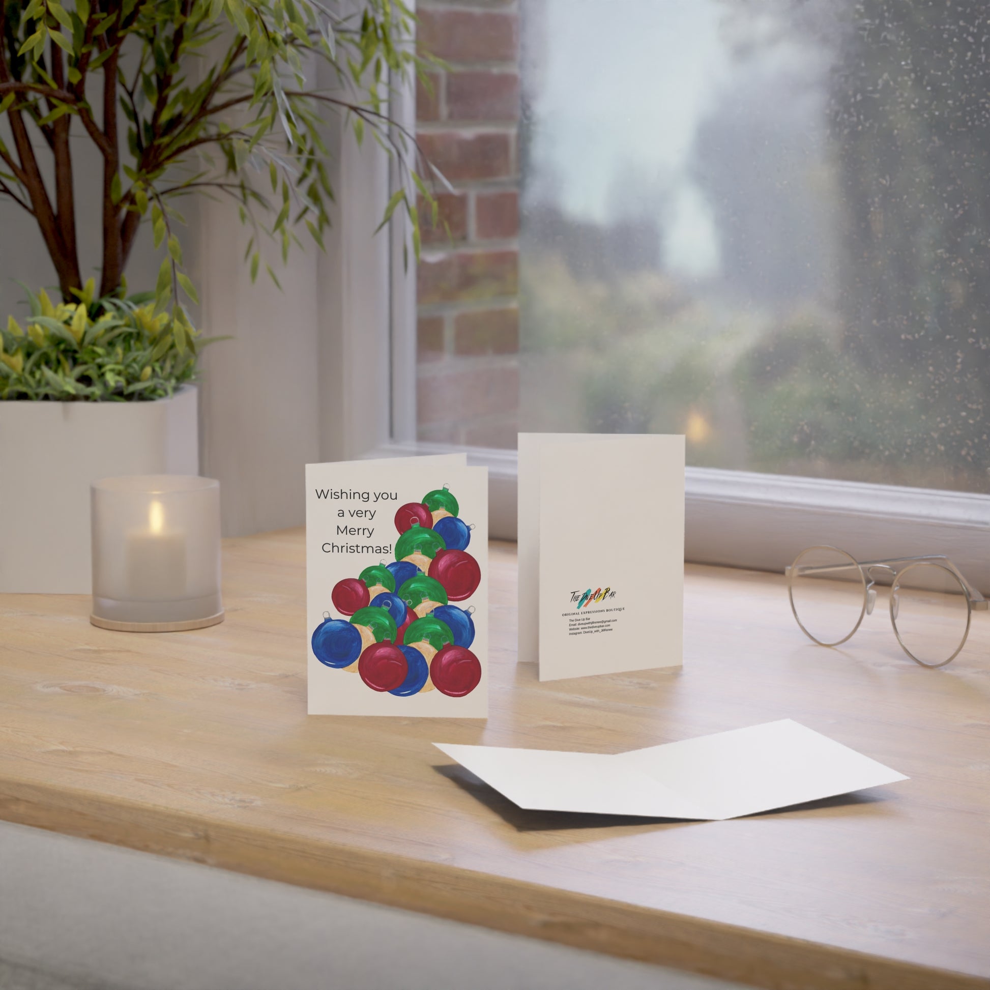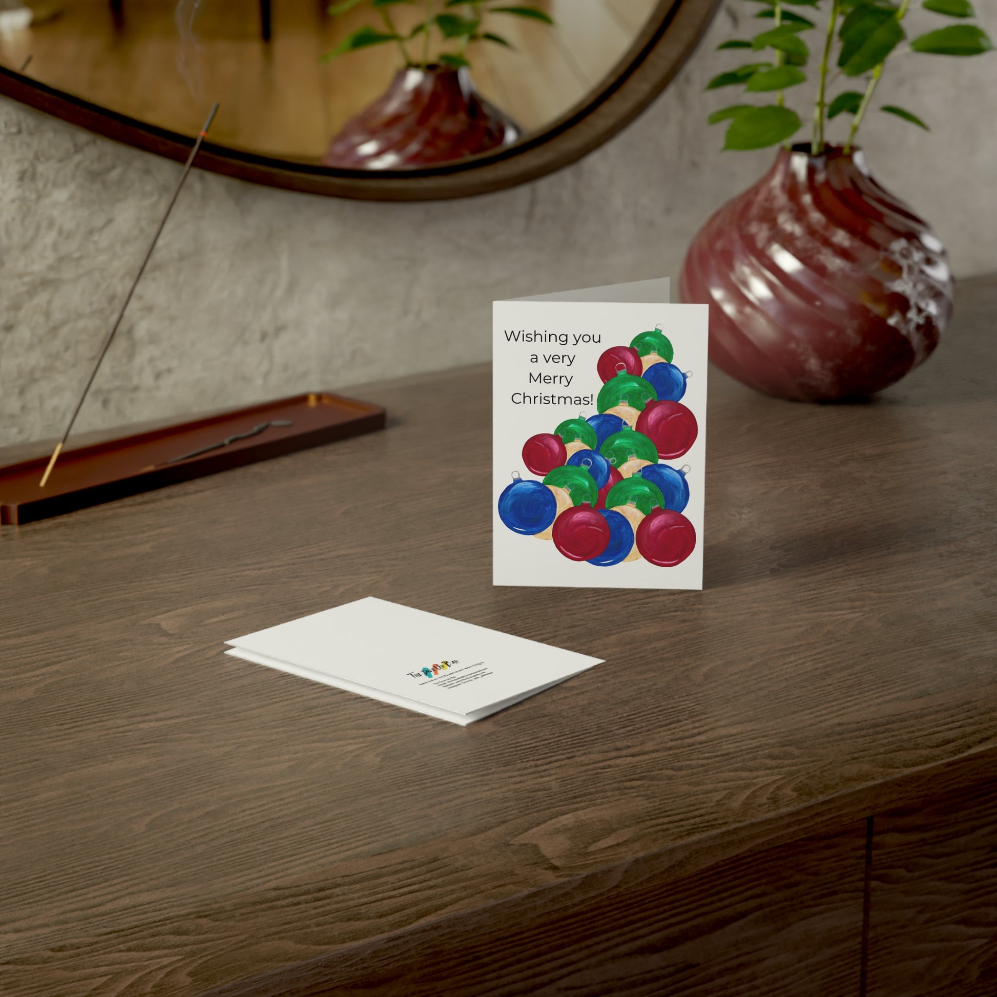 Greeting Cards, Festive Holiday Ornaments Design, Ideal for Christmas Wishes, Invitations, Seasonal Greetings, Pack of 10 Cards
