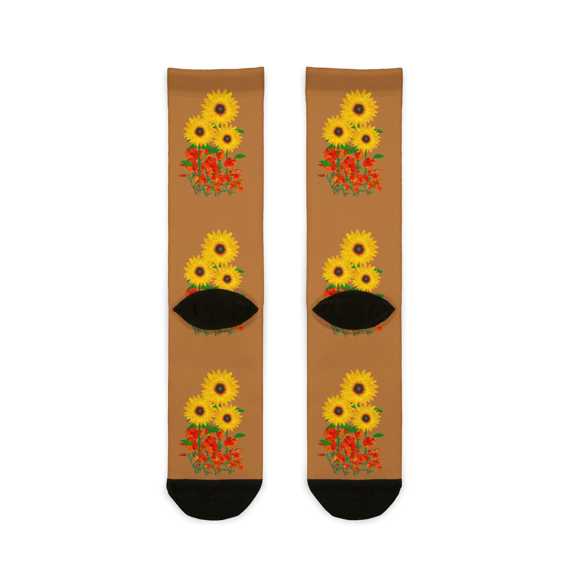 Elevate your sock collection with these vibrant crew socks adorned with cheerful sunflowers. Perfect for adding a pop of color to any outfit, these socks offer both comfort and style. The lightweight, soft-to-touch material makes them ideal for daily wear or cozy nights in. Whether you're running errands, lounging at home, or looking for the perfect gift, these socks fit seamlessly into every lifestyle. They are a thoughtful gift for flower lovers, gardeners, or anyone who appreciates a touch of nature in their wardrobe. Perfect for holidays, birthdays, or any occasion that calls for a little bit of happiness!