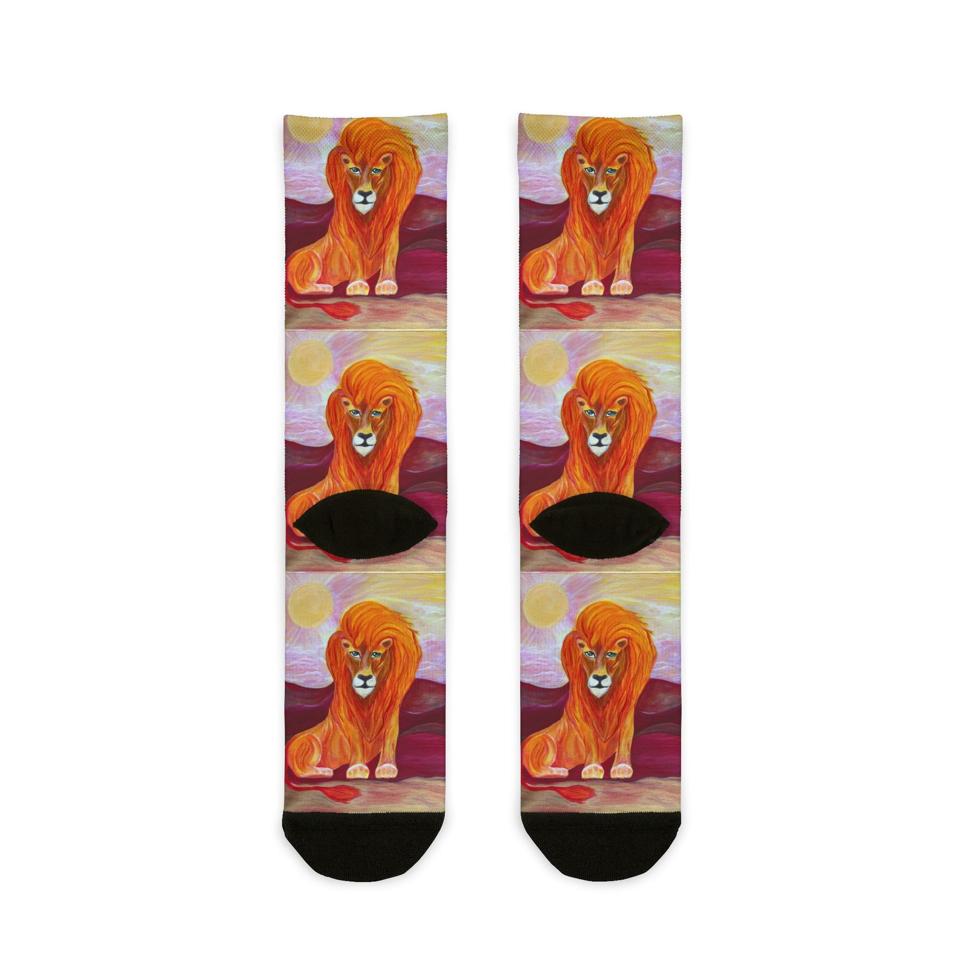 Vibrant Lion, Leo the Lion, Design Crew Socks | Animal Lover's Gift, Fun Fashion Socks, Unique Clothing, Sublimation Socks, Cozy